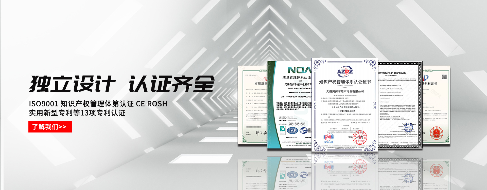 無錫美芮爾超聲電器有限公司是集超聲波技術應用,超聲產品研發,生產、銷售和技術服務為一體的高科技企業,公司設立研發部門,國內銷售部門,外貿銷售部門,售后服務部門。致力于超聲波產品市場工藝與技術合作,公司以技術為本,不斷探索超聲波換能器等相關產品在各個行業技術應用與產品服務,目前產品覆蓋有超聲波換能器的技術應用與開發,超聲波發生器的研發與定制,實驗室超聲儀器、環保工業清洗設備、超聲波萃取與分散、水處理超聲應用,家用超聲技術應用與產品配套等領域,以及各個行業領域的產品技術服務與產品解決方案。